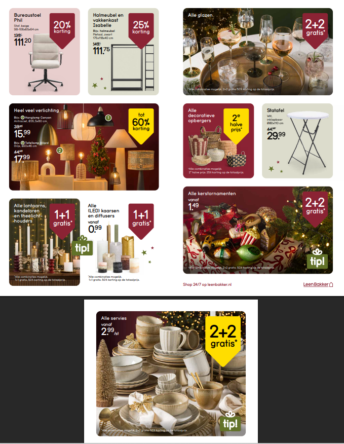 Leen Bakker biedt op zondag 7 december een speciaal ‘styling advies’ voor het perfect dekken van je tafel. Of je nu een feestelijke kersttafel wilt creëren of gewoon je dagelijkse tafel een beetje extra flair wilt geven, zij helpen je graag! Laat je inspireren door de stijlvolle serviescollecties en decoratieve items en profiteer van de volgende leuke aanbiedingen: